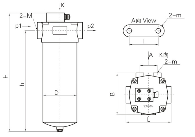 該過濾器裝有壓差發訊裝置,當濾芯因污染堵塞致使進出油口壓差達0.35MPa時,便發出開關信號,此時應清洗或更換濾芯。