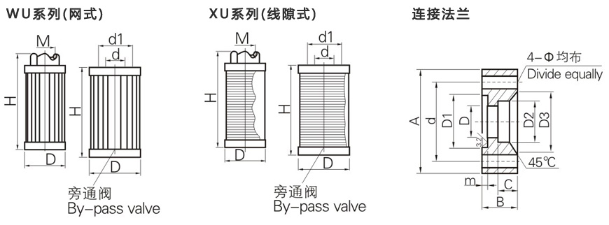 WU,XU系列吸油過濾器屬于粗過濾器,一般安裝在油泵的吸油口處,用以保護油泵避免吸入較大的機械雜質。該過濾器結構簡單,通油能力大阻力小,并設有管式、法蘭式連接,分網式、線隙式兩種。